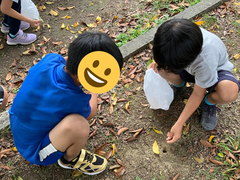 色とりどりの落ち葉を見つけては、「この葉っぱ赤いね!」「こっちはハートみたい!」と大はしゃぎ。