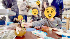 解体ショーの後は、お寿司運びリレーに挑戦しました。友だちと声を掛け合いながら、お寿司を落とさないように慎重に運ぶ姿が印象的で、協力することの楽しさや達成感を味わうことができました。自由時間にはドッジボールを楽しむ子も多く、思いきり体を動かして元気いっぱいに過ごしました。