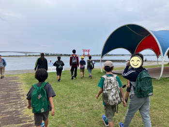 あいにくの曇り空でしたが、子供達は波に触れて遊んだり、浜辺に打ち上げられたフグを見て興味津々な様子を見せたり、元気一杯でした。